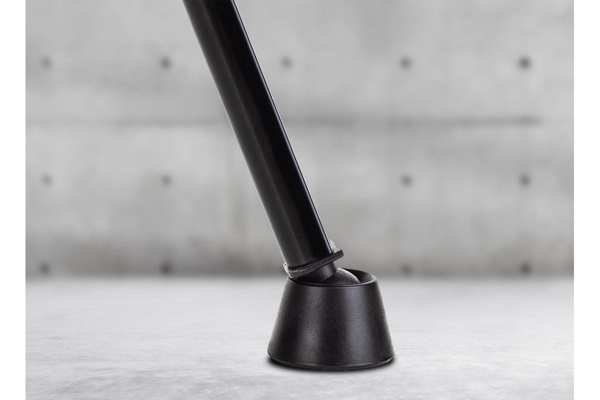 Фиксация телескопических ножек на клипсах. Резиновые упоры ножек сделаны поворотными для устойчивости на неровных поверхностях.